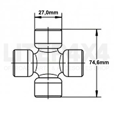 Kardanový kříž. Délka kříže 74,6mm, průměr 27mm.